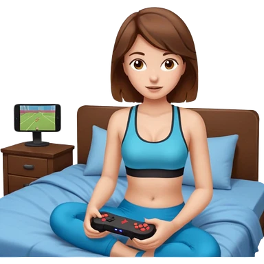 a naked girl sitting on her bed, in a sports bra, playing a video game emoji | AI Emoji Generator