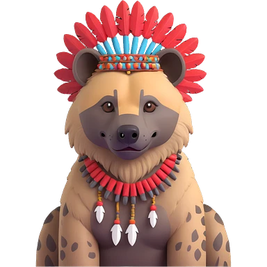 A native strong buff hyena with war bonnet flexing posing full body holding a chopped off human head by the hair emoji | AI Emoji Generator
