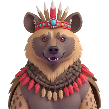 A native strong buff hyena with war bonnet posing emoji | AI Emoji Generator