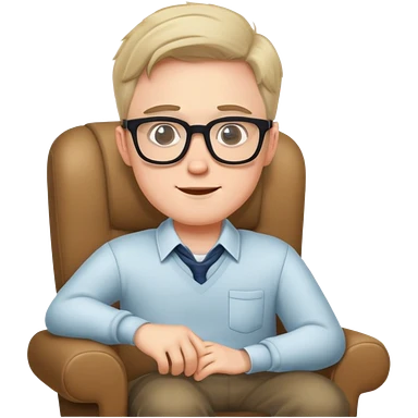A nerdy white guy with brown hair and glasses making a grimacing face emoji
