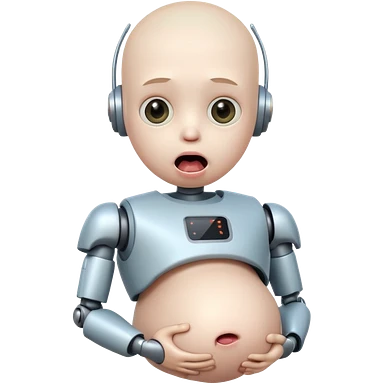 boy robot looking surprised with pregnant and looks funny and has a freaky tounge emoji