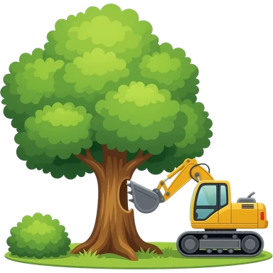 professional arborist cutting down a large tree with chainsaw, wearing safety helmet and protective gear. Scene includes detailed tree trunk, falling wood pieces, forest background, dynamic movement, and emphasis on expertise and safety in tree removal emoji