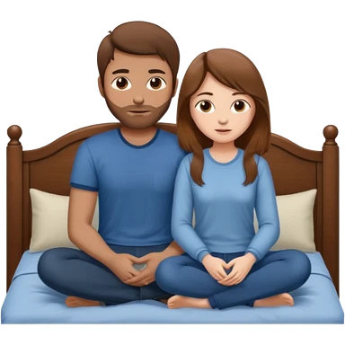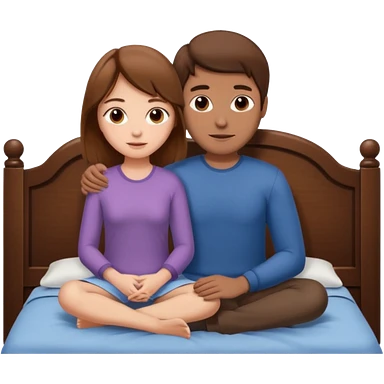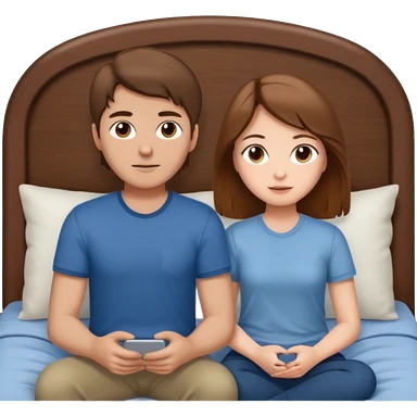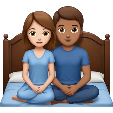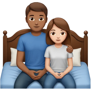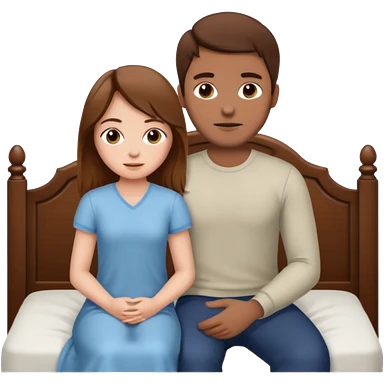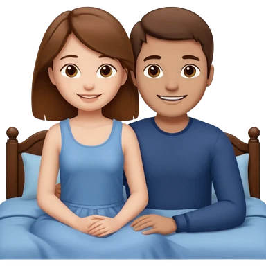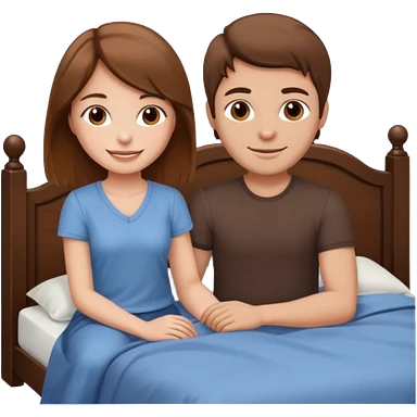 A brown-haired girl and a brown-haired man. They are both on a bed. The girl is sitting on the man.she is sitting on a man . they are in a sex position emoji