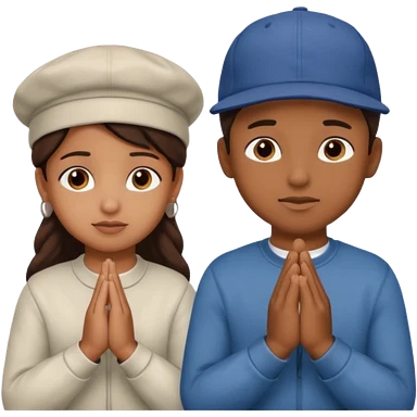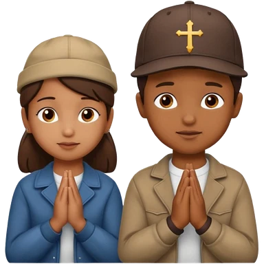 A BROWN MOTIVATIONAL girl and boy WITH A CAP ON WITH PRAYING HANDS emoji