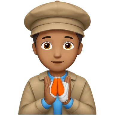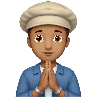 A BROWN MOTIVATIONAL GUY WITH A CAP ON WITH PRAYING HANDS emoji