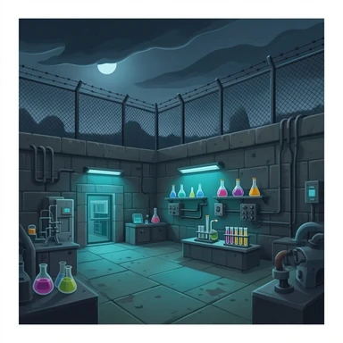 a cross of a concentration camp and a illegal science lab emoji