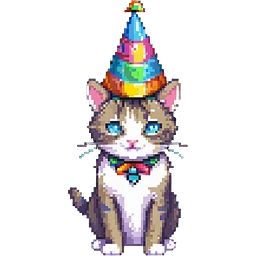 A orange cat with specs and party hat