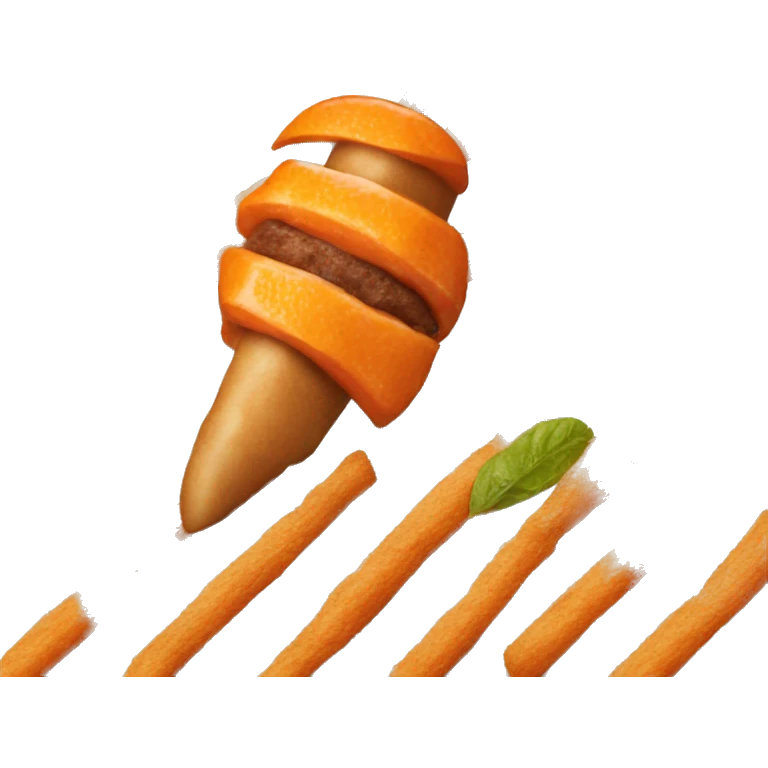 A sword made of Kebab slicing a a castle made from veggie emoji
