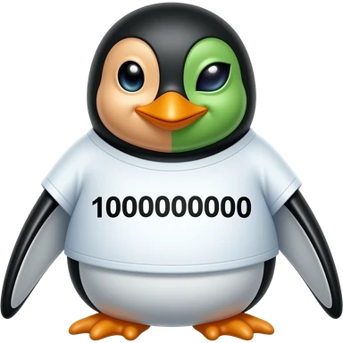 A penguin that has 1000000000 on it and with a human face and alien face and a shirt emoji