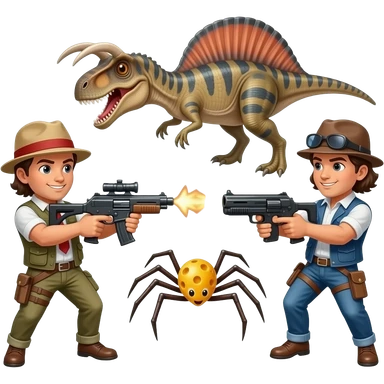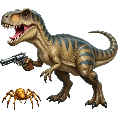 A cryolophosaurus battling a cheesespider in mexico with guns emoji