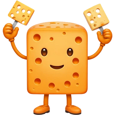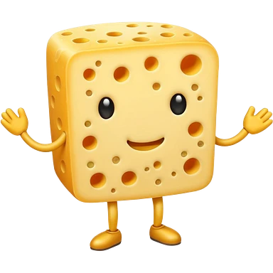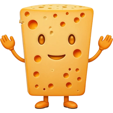 A cheese with arms and legs and gritted teethwith the arms being half circles emoji