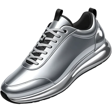A pair of futuristic sneakers emoji made of silver chrome, sleek streetwear design, smooth metallic panels, subtle reflections, luxury swag aesthetic, iOS emoji style, centered, clean white background