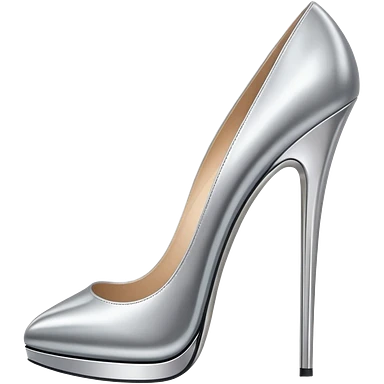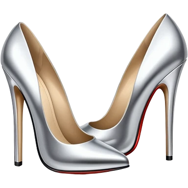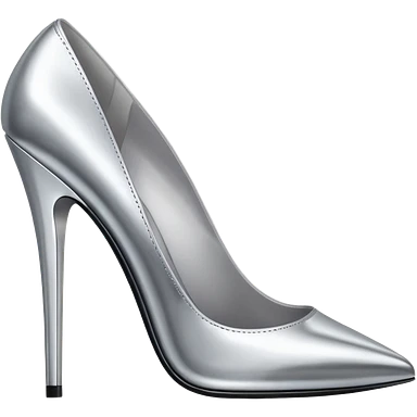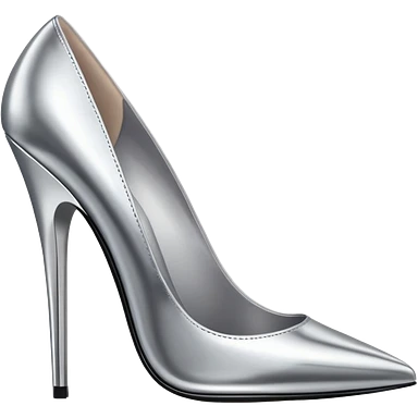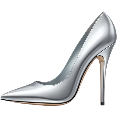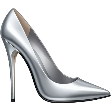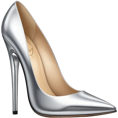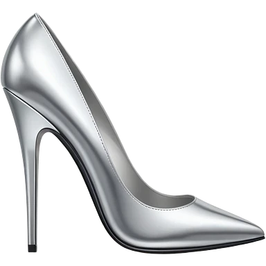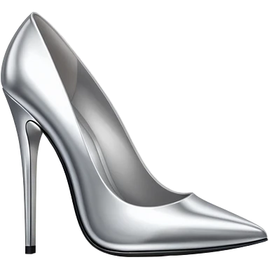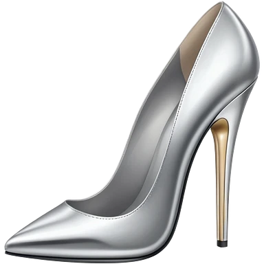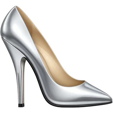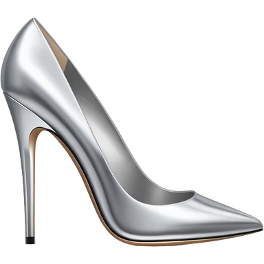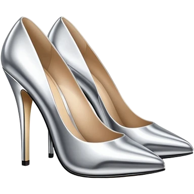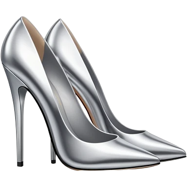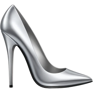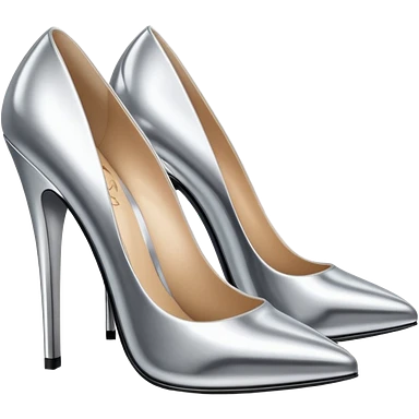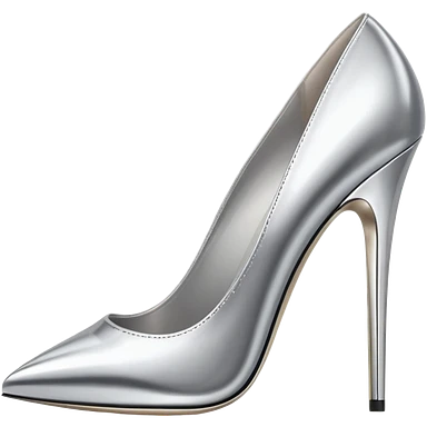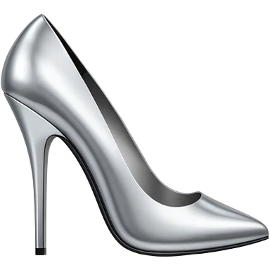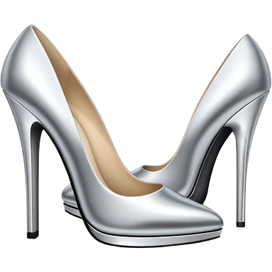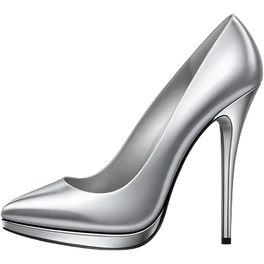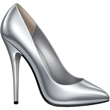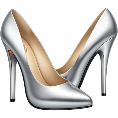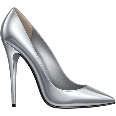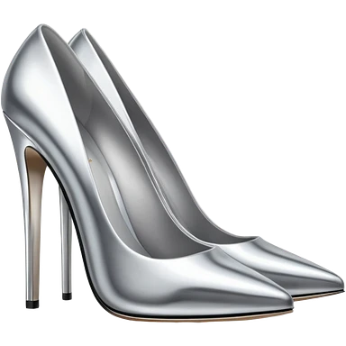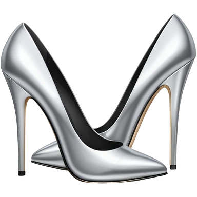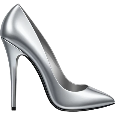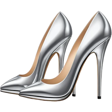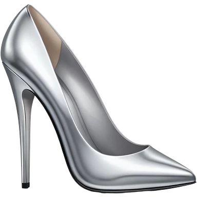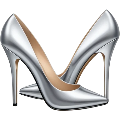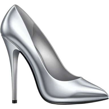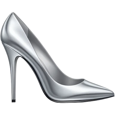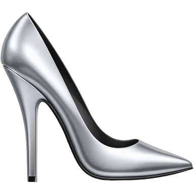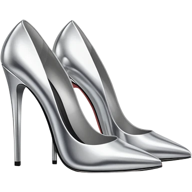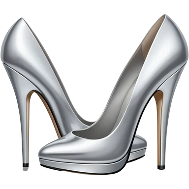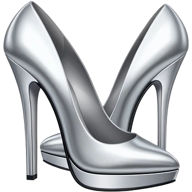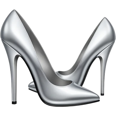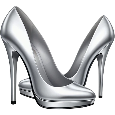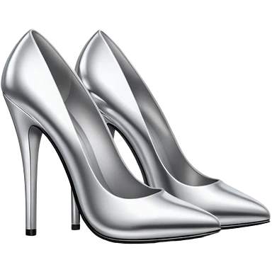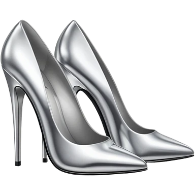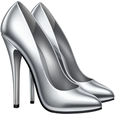 A pair of high heel shoes emoji made of polished silver chrome, elegant sharp silhouette, smooth metallic surface, glossy reflections, luxury sexy vibe, minimalistic iOS emoji style, centered, clean white background emoji