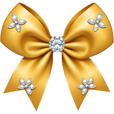 A diamonted cheer bow in gold just diamonte in middle tiny ones emoji