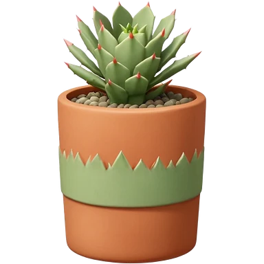 A ceramic pot in a pastel terracotta color, shaped like a cylinder, with a tall pot containing a desert cactus. emoji