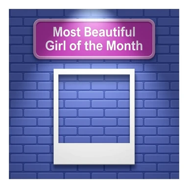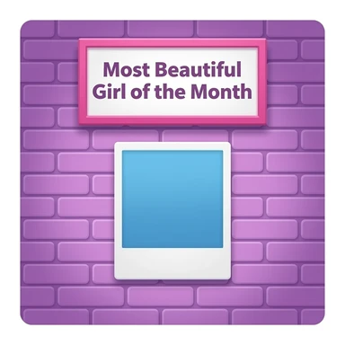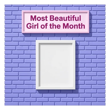 blue and purple A stylish brick wall background with a centered photo frame hanging on it, above the frame there is a sign that reads “Most Beautiful Girl of the Month”, soft lighting, realistic brick texture, subtle shadows on the wall, empty frame for photo inspired by barbie colour pallete emoji