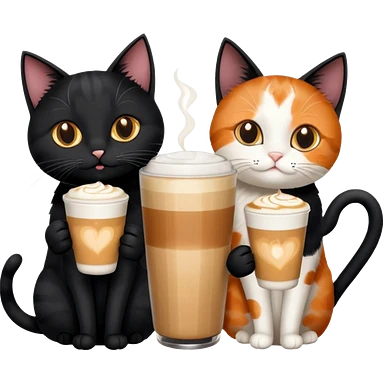 2 black cats and 1 calico cat all drinking lattes emoji
