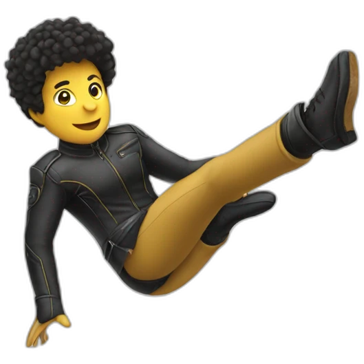 parkour white person, brown middle part long hair, doing a salto jump emoji