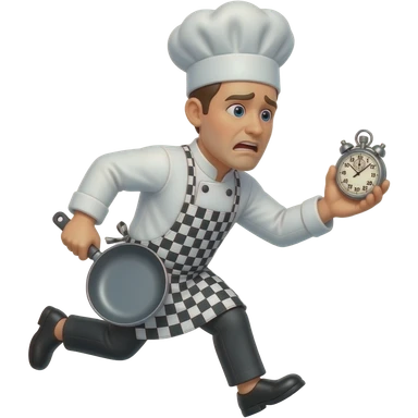 A worried male chef that seems the be in a hurry emoji
