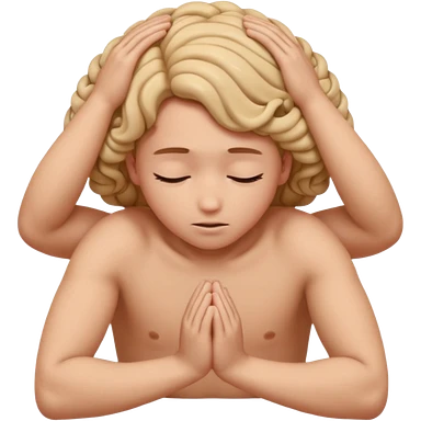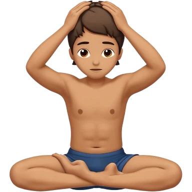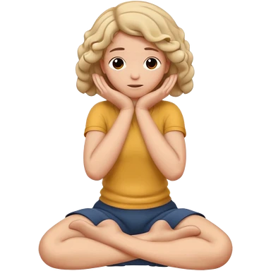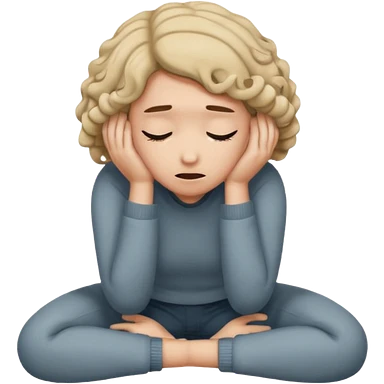 A person shaking back and forth with hands on head and knees curled up to chest area emoji
