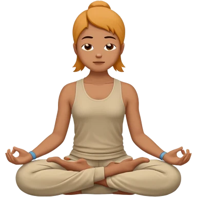 A Black woman with box braids sitting in a cross-legged meditation pose, eyes closed, hands resting on her knees, wearing a comfortable yoga outfit (sports bra & leggings or a loose top). emoji