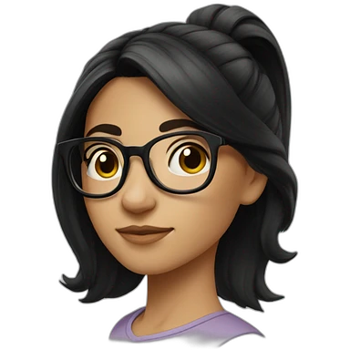 a nerdy portuguese girl with black long hair on a pony tail and black rounded glasses emoji