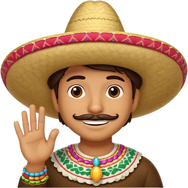 person deep in thought with a light smile on his face, wearing a traditional Mexican sombrero. The character has a neutral or slightly furrowed expression, one hand gently touching their chin in a classic thinking pose. emoji