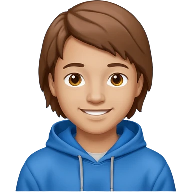 A young person with fair skin and soft facial features. The face is oval-shaped with a smooth complexion. The hair is medium brown, slightly tousled, and styled with a natural side-swept look, adding a bit of volume on top. Eyebrows are medium in thickness and naturally shaped. Eyes are medium-sized with a calm, neutral expression, and the eyelids are slightly heavy, contributing to a somewhat serious or relaxed demeanor. The nose is straight and proportionate to the face. The lips are medium in fullness with a subtle, closed-mouth expression. The jawline is soft and not sharply defined, adding to the youthful appearance. The person is wearing a black hoodie with visible silver grommets on the hood strings. Background suggests an indoor office or school setting with white walls and a ceiling with fluorescent lights emoji