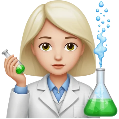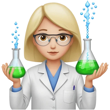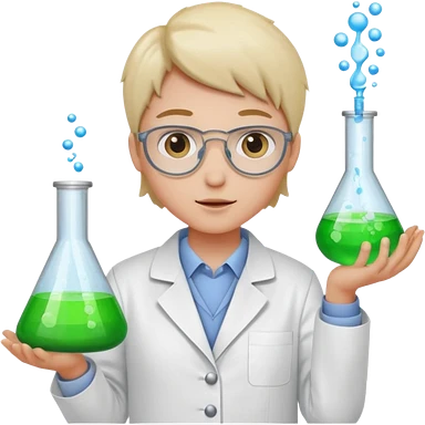 A person wearing safety goggles, a stethoscope, and a white coat. In one hand they hold a test tube containing chemicals and in the other a syringe. emoji | AI Emoji Generator