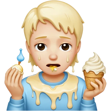 A person with 15 IQ crying over an ice cream emoji | AI Emoji Generator