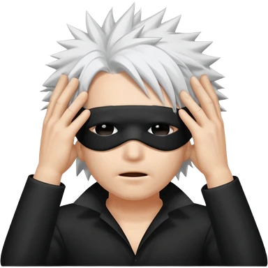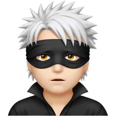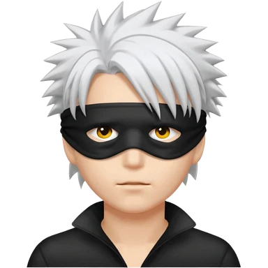 spiky white hair and a black blindfold emoji