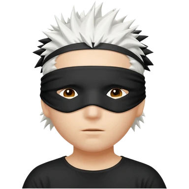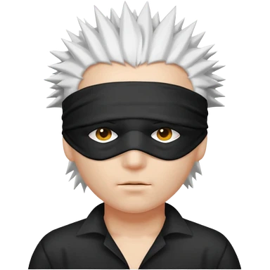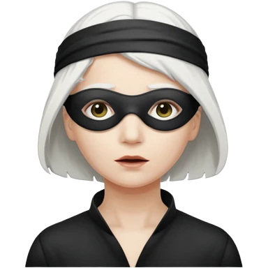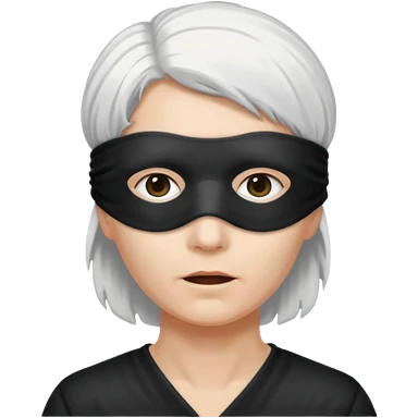 A person with white hair which is standing upward and blindfolded and also make it so it’s impossible to see through the blindfold emoji