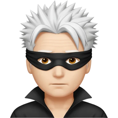 blindfolded man sitting on a log with white hair and blue kimono emoji