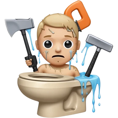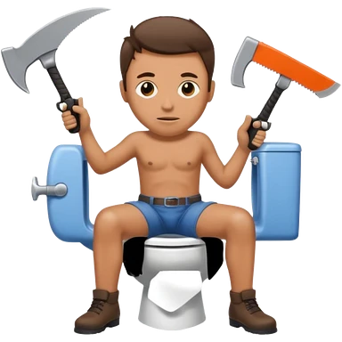 A persons head is sticking in a toilet and he’s holding guns and saws emoji