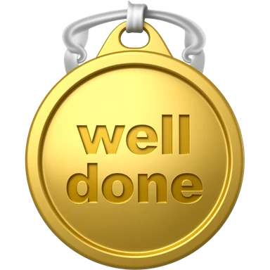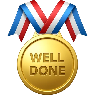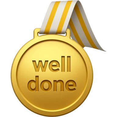 A ribbon gold medal with the words ‘WELL DONE’ imprinted on it emoji
