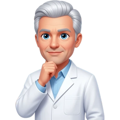 a male physicist, pale skin, rich white hair neatly combed, wearing a crisp white lab coat over a collared shirt, standing thoughtfully in front of a chalkboard covered with complex physics equations E=mc 2 , quantum mechanics emoji