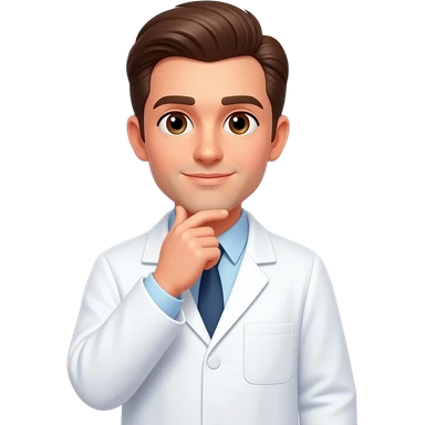 illustration of a male physicist, pale skin, rich brown hair neatly combed, wearing a crisp white lab coat over a collared shirt, standing thoughtfully in front of a chalkboard covered with complex physics equations (E=mc 2 , quantum mechanics emoji