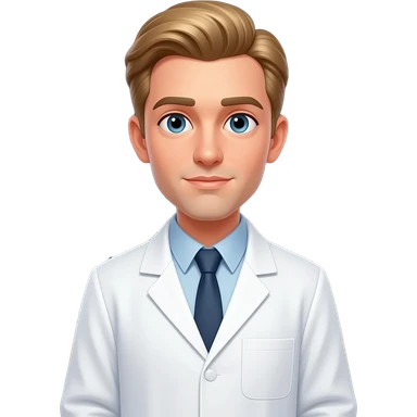 a physicist, pale skin, rich blond hair neatly combed, wearing a crisp white lab coat over a collared shirt, standing thoughtfully in front of a chalkboard covered with complex physics equations E=mc 2 , quantum mechanics emoji