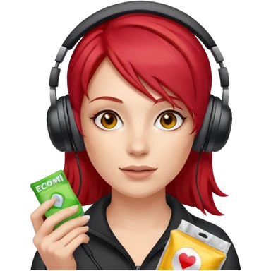 girl with dark brown hair and a black gaming headset. lick a foot shaped lolly emoji