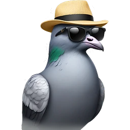 Pleasr make a cool pigeon snoking a cigarette in the style of pepe emoji