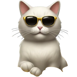 Hello Kitty wearing sunglasses, sitting on a pile of cryptocurrency coins, cute emoji style emoji