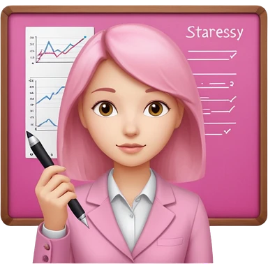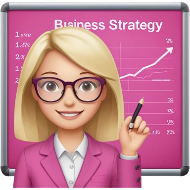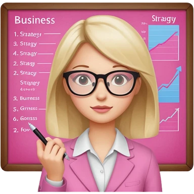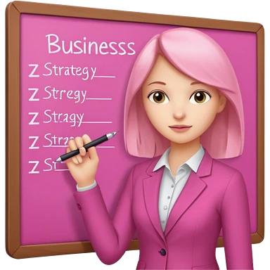 pink board with a girl writing on it and on the board there are graphs and a title "Business Strategy" emoji