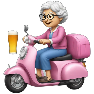 a granny with a beer on a pink scooter emoji