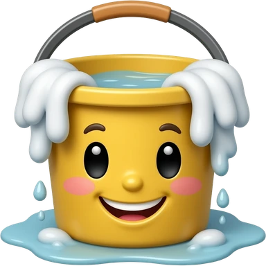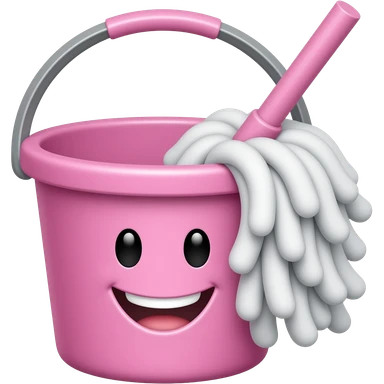 A PINK BUCKET WITH A MOP AND SPLASHING WATER AND BUBBLES CUTE AND HAPPY emoji | AI Emoji Generator