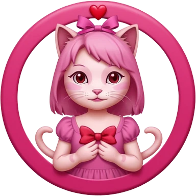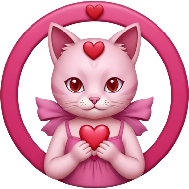a pink cat who is doing this 🫰 and she has like red hearts around her head like a angel circle. the cat is going to have on a dark pink dress with a bow. emoji | AI Emoji Generator