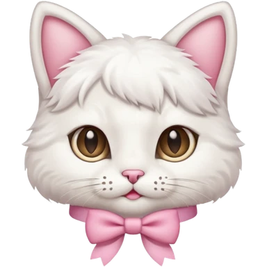 A cute white cat with a light pink bow emoji
