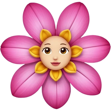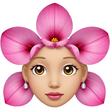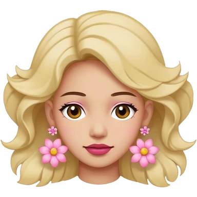 a girl with brunette hair and a pink flower clip in her hair working on a laptop emoji