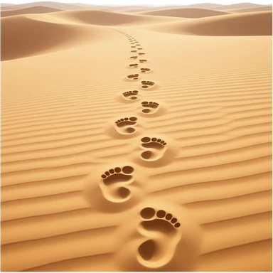A quiet beach at sunset. Two sets of footprints—one small, the other larger, leading forward. As they continue, the small steps merge into the larger ones, until only one set remains, past and present walking as one. emoji