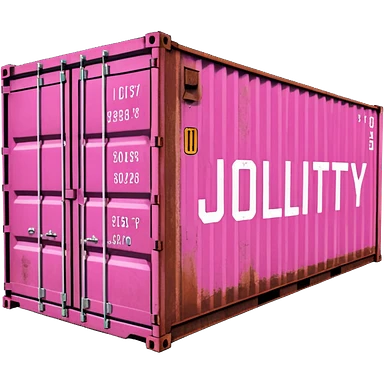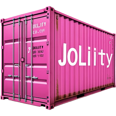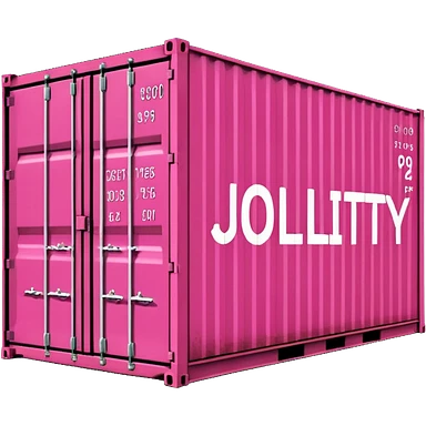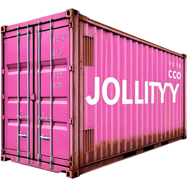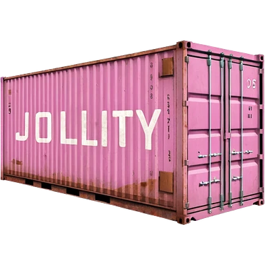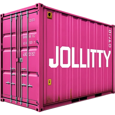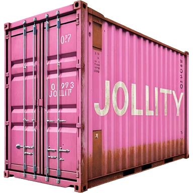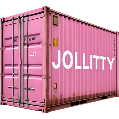 a pink shipping container with the word "Jollity" in big letters on the long side emoji