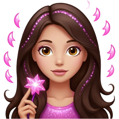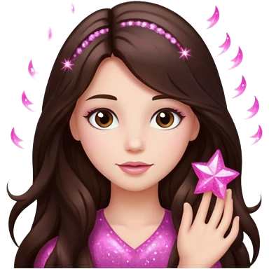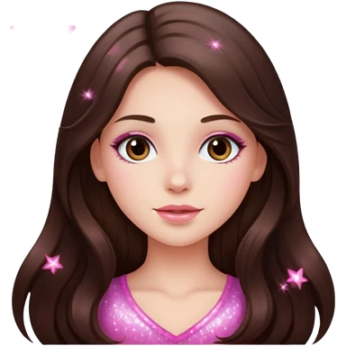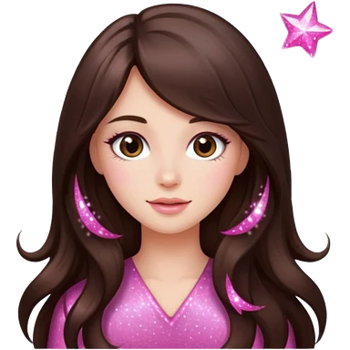 pink sparkles emoji of a long hair brunette emoji
